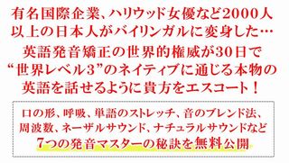 スコット先生は日本人の為に22年間英語の発音、コツを教えている発音矯正の第一人者です。 スコット先生の発音大学はビジネス会話レベルでレベル3を最短30日でマスターすることができます。 先生から直接教えてもらうと1コースで30万円もするので手が出せない人もいると思いますが、 そして今、無料で7つの発音マスターの秘訣を動画で公開中です。 日本人の英語発音はレベル的に低いです。発音のコツ、舌の使い方もしっかりとマスターできるこのマスター方で あなたも英語発音の達人を目指して下さい。 PR |